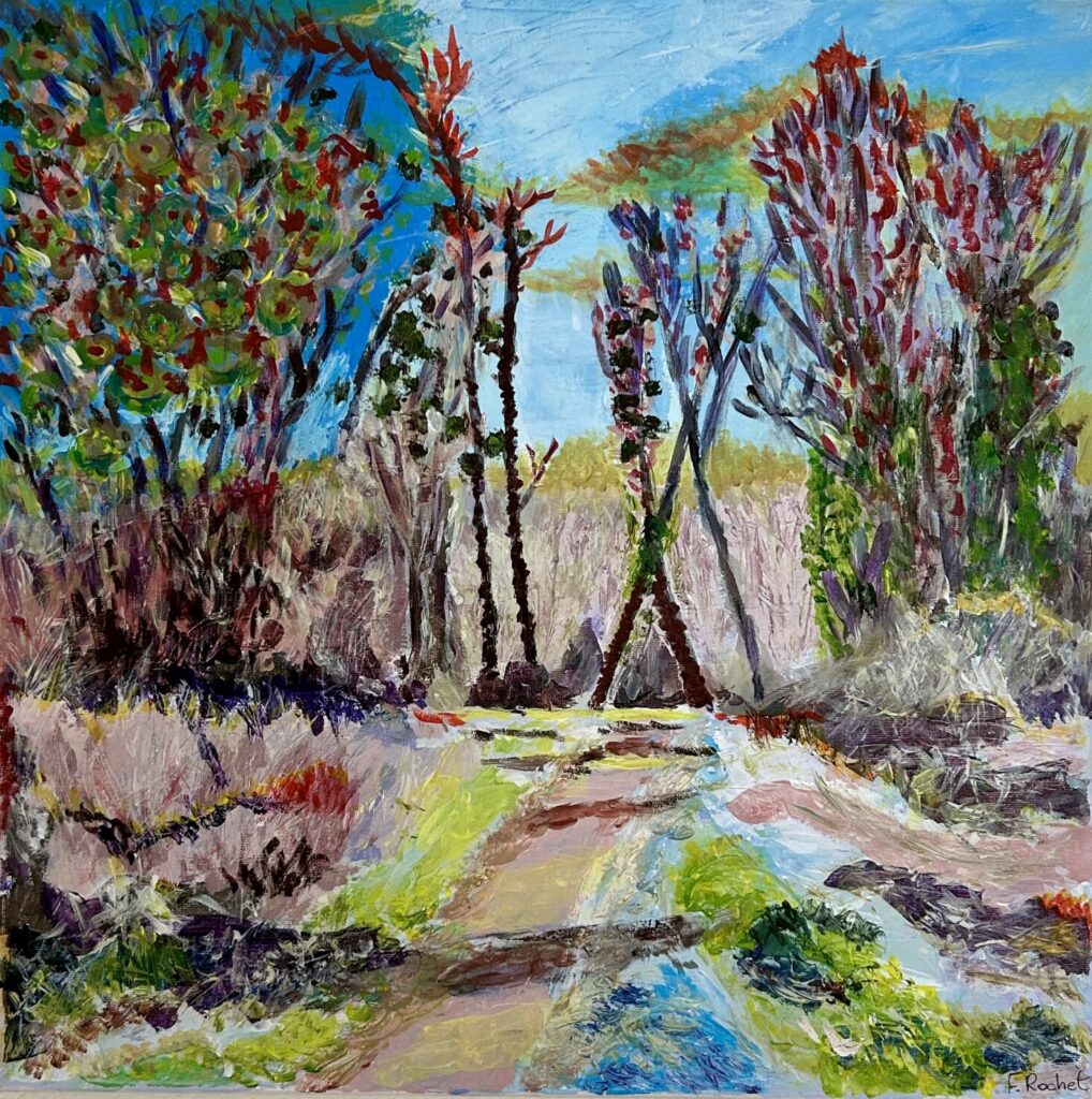 François Rochet – Forêt et marécage en polychromie – 2025 -peinture acrylique sur toile coton – 50×50 cm
